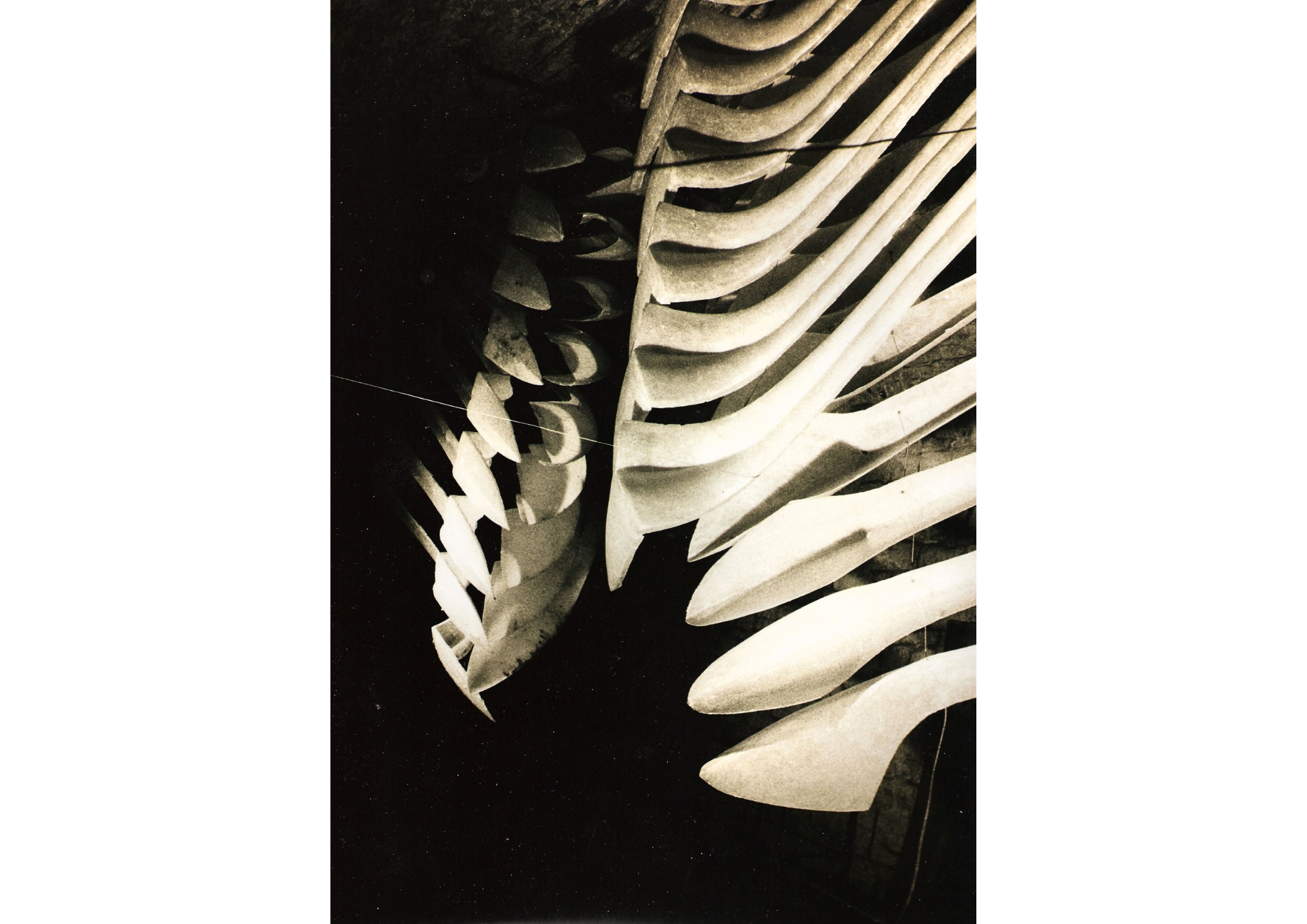 In der Skulptur„Ukulelen“ (2010) vergegenwärtigen die Bearbeitungsspuren auf den Instrumenten das Geräusch und die Bewegung des Schleifens. Die Klangkörper selbst werden zu einem Sinnbild zusammengebunden, das die Aufhebung der medialen Grenzen programmatisch auf den Punkt bringt.
