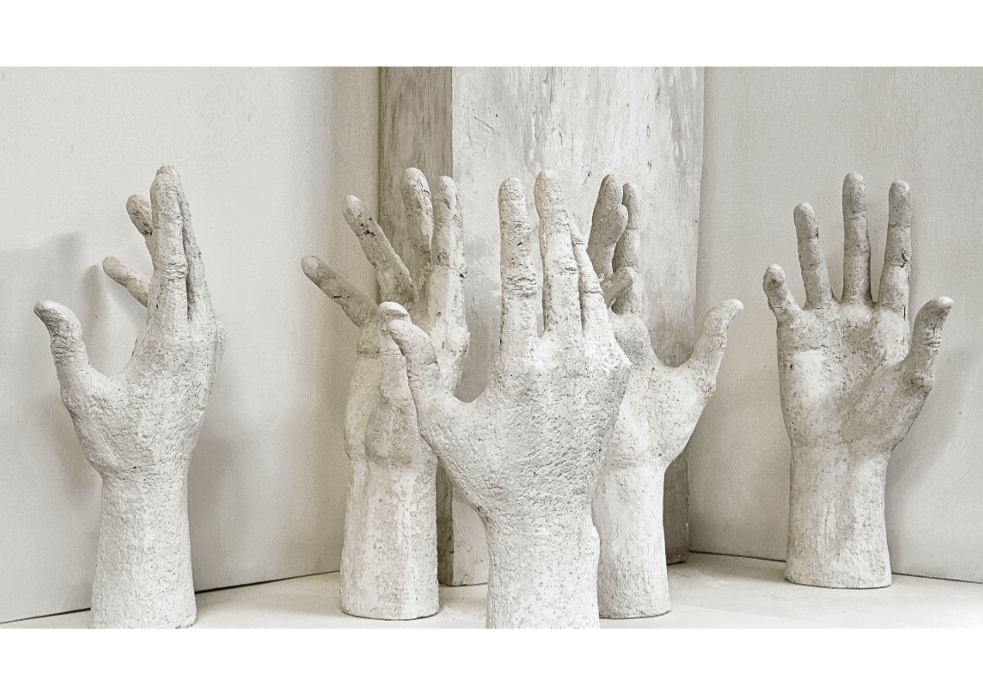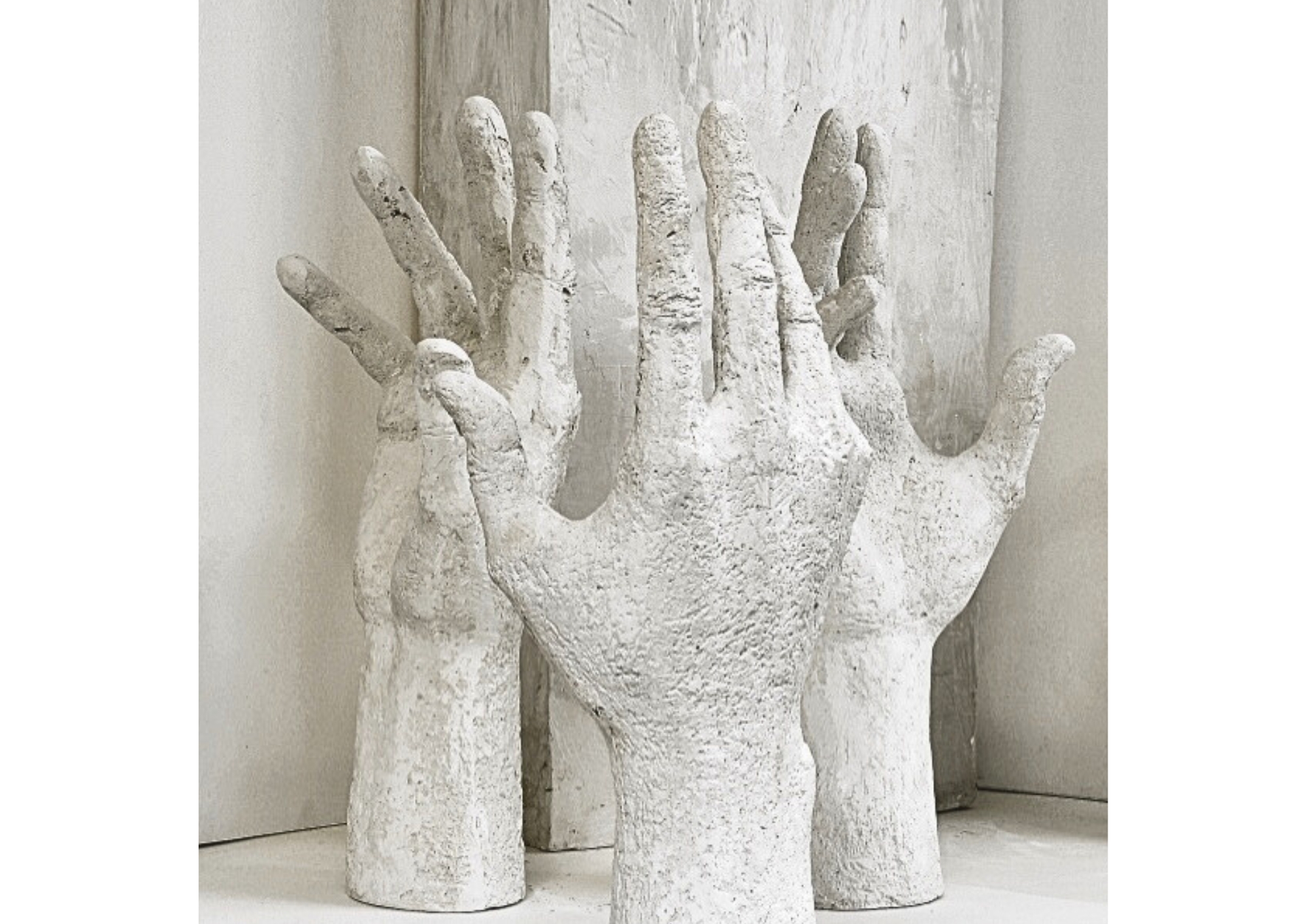 dialog der hände, weißer zement/sockel, 49 cm, 2010
